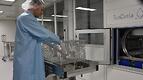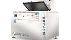 Ved den nye vaskelinjen setter en operatør i gang en vaskesyklus slik at vi kan følge hele prosessen. Maskinlinjen heter FinnSonic Optima V-600 MBT200 og er produsert av FinnSonic OY, Lahti, Finland. Teijo Norge AS har vært norsk eneimportør for FinnSonic OY nesten siden Teijo Norge AS ble startet i 1981.